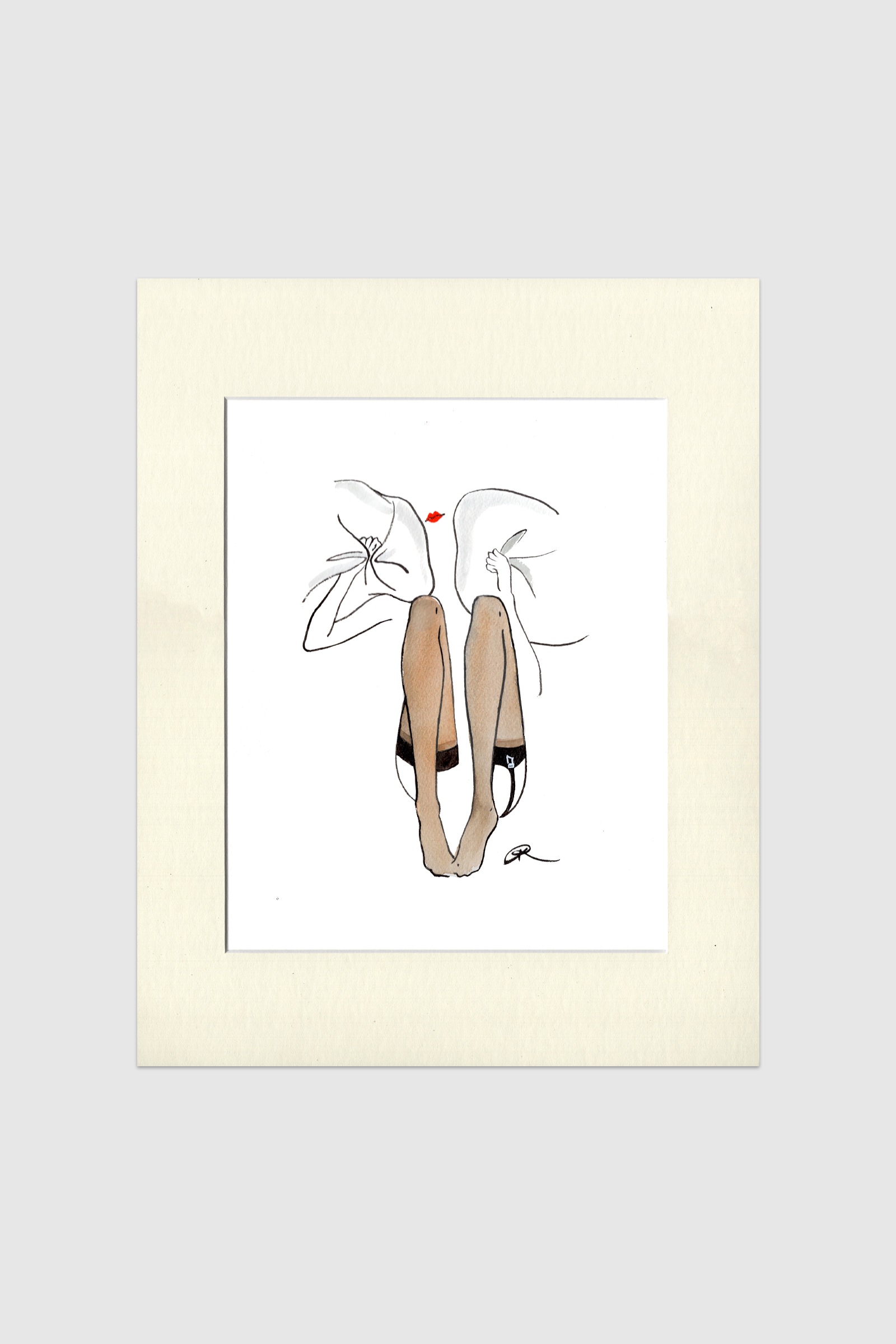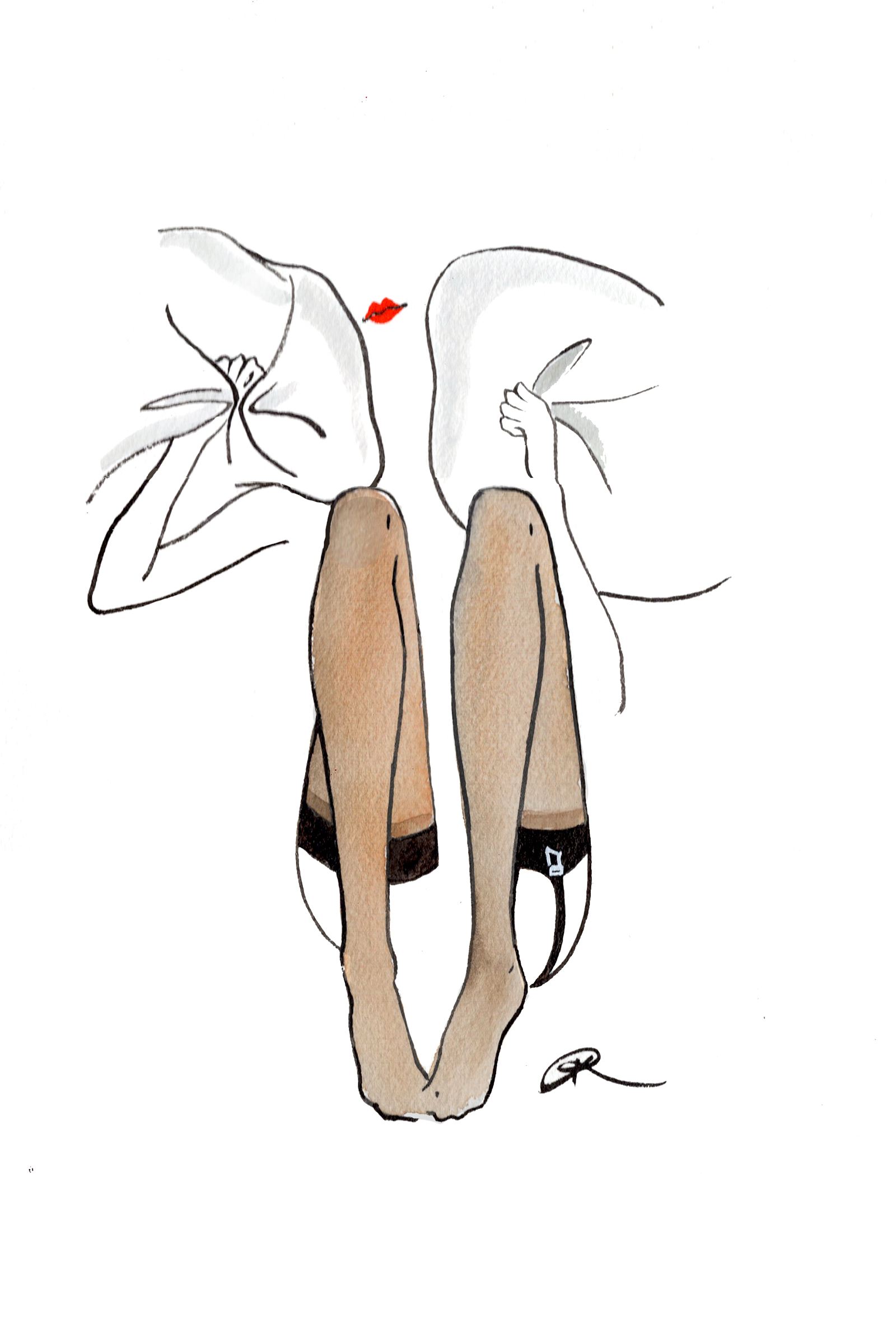 Regina Yazdi has created sketches and paintings for an illustrious clientele that includes Chanel, Dior, Bulgari, Harry Winston, and CR Magazine. For Holiday, she's turned her gaze and hand to the world of KIKI DE MONTPARNASSE with a trio of limited edition, original gouache on paper that feature iconic KIKIDM styles. 'La Petit Mort', the French saying for an orgasm, was inspired by our signature Fuck/Sleep Pillowcases.
